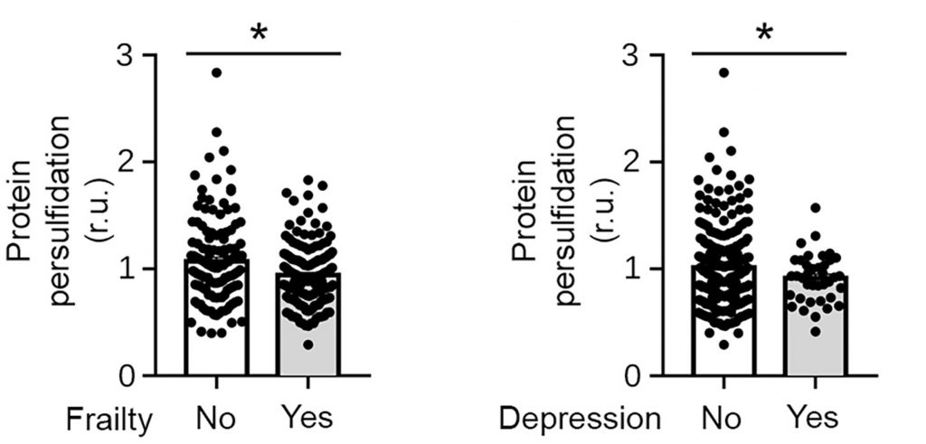 In light of their findings, the Spanish-based researchers examined protein persulfidation in 288 older individuals with various pathological conditions. Strikingly, they found that higher protein persulfidation levels were correlated with higher grip strength, supporting the results found in mice. Moreover, lower levels of protein persulfidation were correlated with depression, delirium, and frailty—vulnerability to diseases. These findings suggest that increasing protein persulfidation by consuming DAS could potentially lead to improved strength and brain health in older individuals.