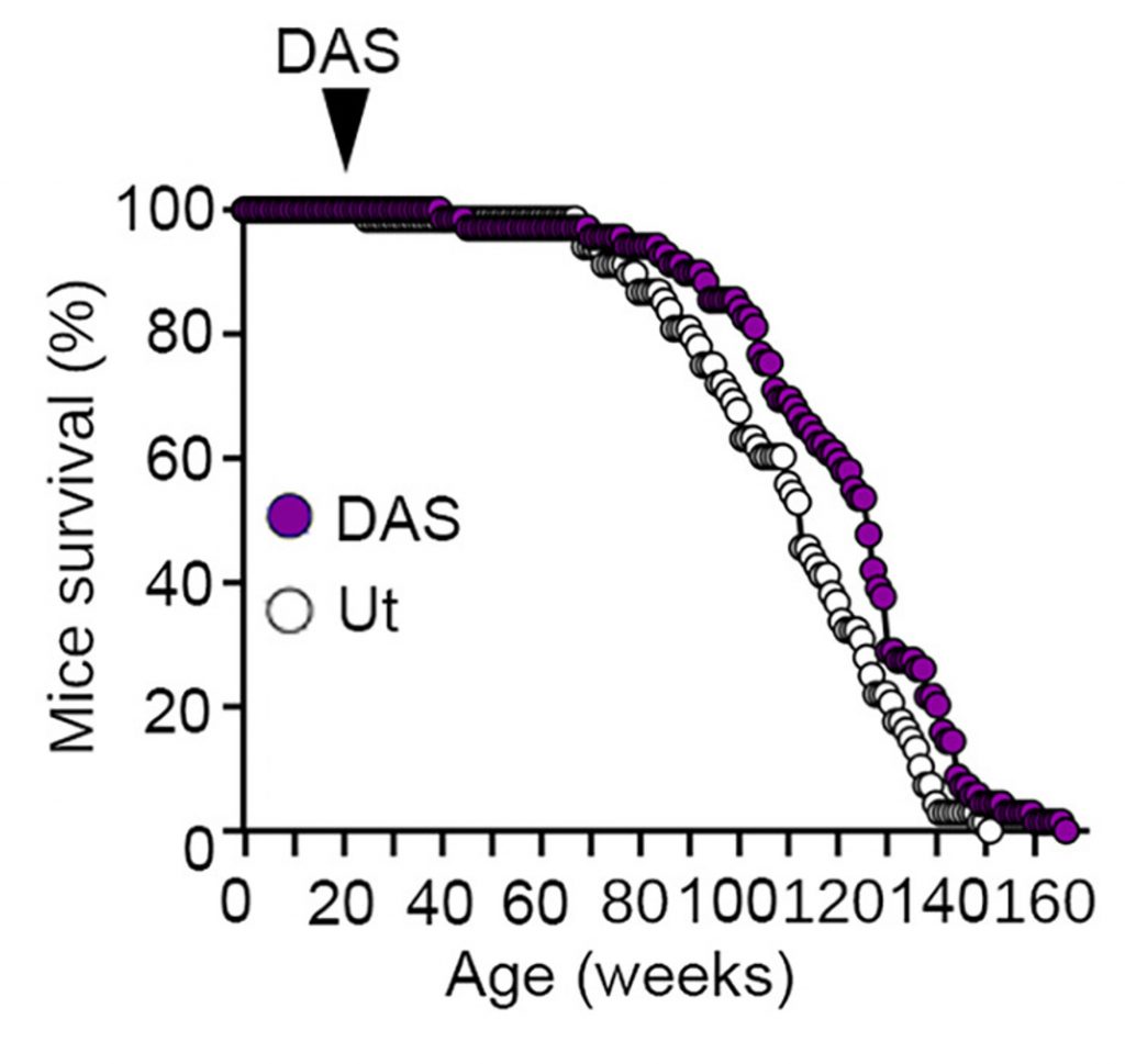 - DAS prolongs the lifespan of mice by 11.4%.