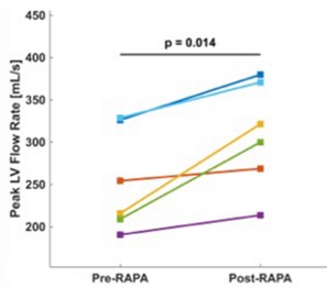 When too stiff, the left ventricle is unable to stretch enough to accommodate normal volumes of blood. However, the researchers found that the filling rate of the left ventricle was increased in response to rapamycin treatment, suggesting the treatment reduces left-ventricle stiffness. Moreover, rapamycin increased the speed and volume of blood flowing through the mitral valve (from the left atrium to the left ventricle).