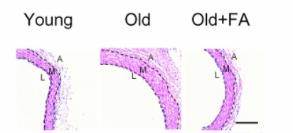 The researchers found that FA supplementation prevented the age-related thickening of the tunica media while also reducing fibrous tissue, suggesting that FA counteracts blood vessel aging. Additionally, FA increased blood vessel relaxation, indicating improved elasticity and reduced stiffness, also suggesting slowed blood vessel aging.