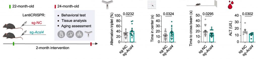 - Blocking ACSL4 with gene therapy counteracts mental and physical decline in aged mice.